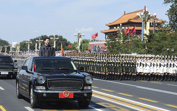 中共中央总书记、国家主席、中央军委主席习近平检阅受阅部队。新华社记者 李学仁 摄