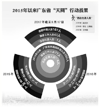 广东省自2015年4月成立追逃办以来,共追回外逃人员382人,其中国家工作人员77人,包括吴权深、王雁威、常征、王林娟等4名“百名红通人员”,追逃追赃工作取得重要阶段性成果。