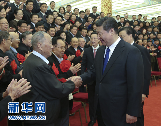 11月26日,党和国家领导人习近平、刘云山、张高丽等在北京人民大会堂会见全国离退休干部先进集体和先进个人代表。 新华社记者 兰红光 摄