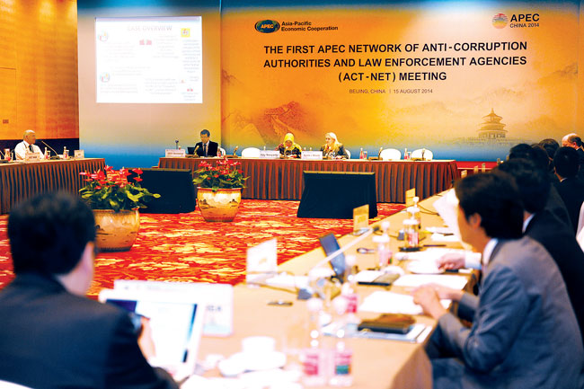 今年,中国担任APEC轮值主席国,监察部担任反腐败工作组主席,8月在北京举行工作组第19次会议、反腐败高层研讨会和反腐败执法合作网络(ACT-NET)第一次会议。