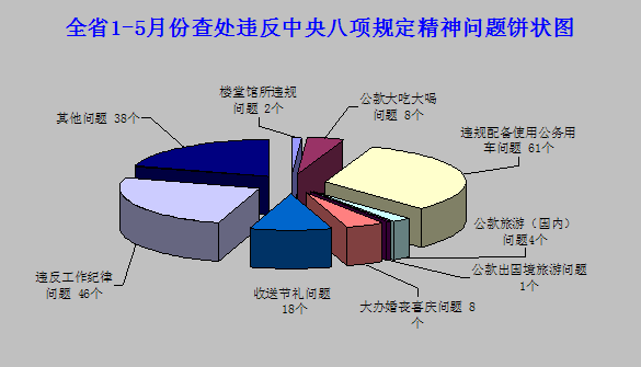中央八项规定颁布以来,广东各级纪检监察机关认真履行职责,加大监督执纪力度,坚持暗访、曝光、查处、追责“四管齐下”,坚决查处顶风违纪案件,严肃追究直接责任人和有关领导责任,点名道姓通报曝光典型案件,有力地促进了党风政风好转。近日,广东省纪委对全省1至5月份查处违反八项规定精神问题情况进行了通报。