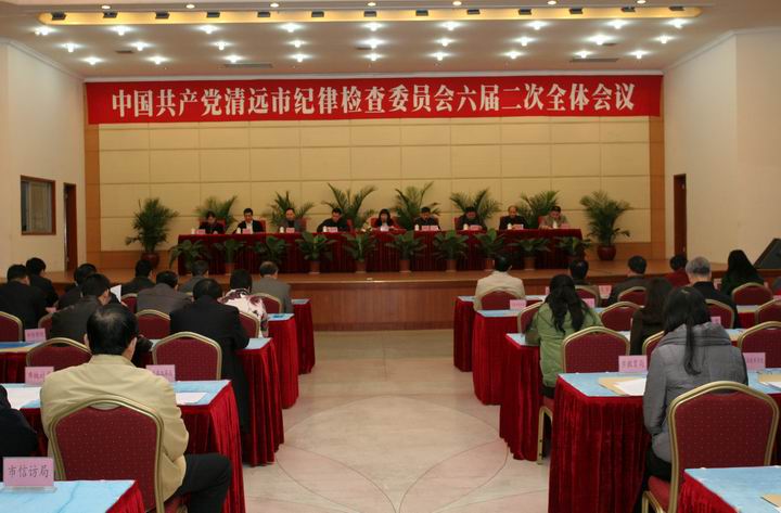 1月16日上午,在市国际会展中心308会议室中国共产党清远市纪律检查委员会六届二次全体会议召开。会议贯彻落实清远市六次党代会及“两会”精神,认真总结回顾2011年全市反腐倡廉建设工作,全面部署2012年清远市党风廉政建设和反腐败工作任务。会上,清远市委常委、市纪委书记黄兆芬代表常委会作工作报告,市纪委全体常委、委员参加会议。会议由清远市纪委副书记、监察局长严名山主持。