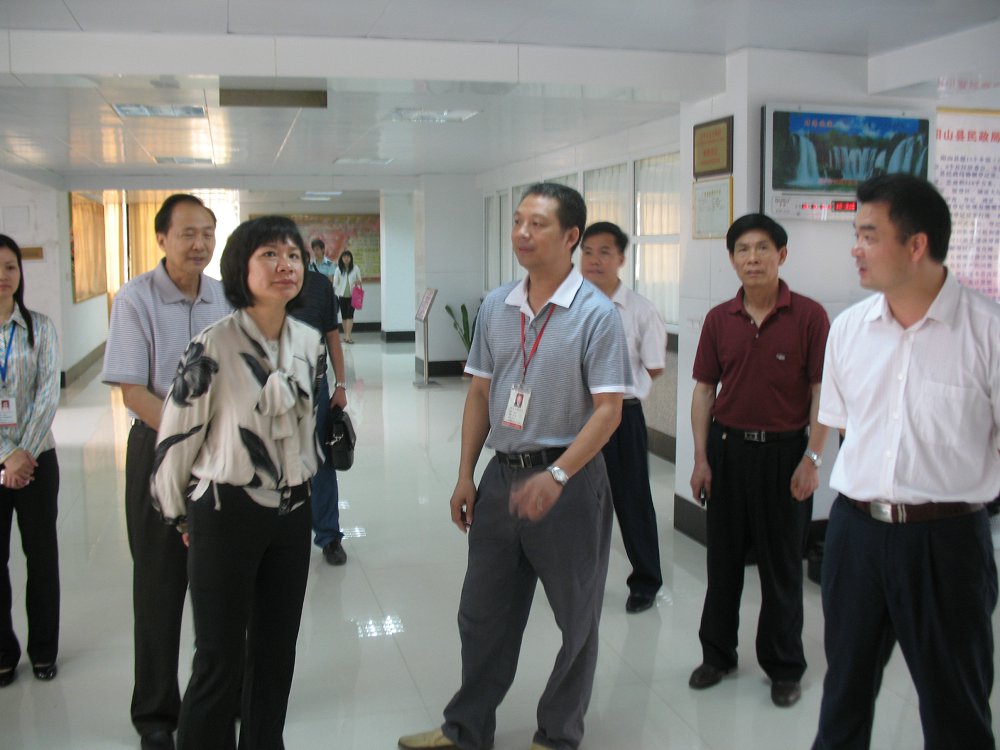图为黄兆芬一行察看阳山县民政局婚姻登记大厅