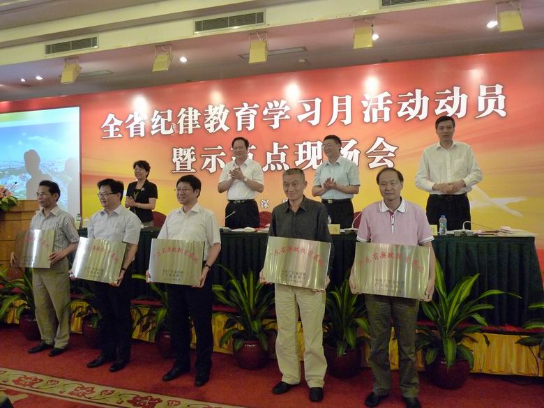 近日,在深圳召开的全省纪律教育学习月活动暨示范点现场会上,清远市“尚清园”廉洁文化园区被广东省纪委、监察厅命名为第一批广东省廉政教育基地。省委副书记、省纪委书记朱明国等领导为获得此称号的5个单位颁发牌匾,我市纪委副书记、监察局局长曾金玲接受授牌。