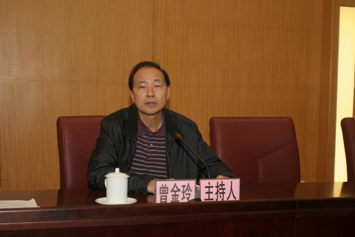 图为清远市纪委副书记、监察局长曾金玲主持会议并作专题解读