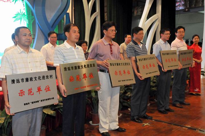 在7月12日召开的清远市纪律教育学习月活动动员会上,清远市委常委、宣传部长雷广财宣读了关于授予清远市气象台等6个单位为全市首批廉政文化建设示范点的决定。这6个受表彰的单位分别是:清远市气象局、英德市白石窑水电厂、清新县地税局、清新县第三小学、清城区石角镇、连南县三排镇油岭村。 为认真贯彻落实中纪委《关于加强廉政文化建设的意见》的要求,推动我市廉政文化建设深入开展,今年初我市全面启动了廉政文化建设示范点创建工作。近日,清远市党风廉政教育联席会议成员单位严格按照《清远市廉政文化建设示范点工作意见》中“五有”考评标准,对申报首批市级廉政文化建设示范点的单位分别进行了实地检查验收。清远市气象局等6个单位被评为清远市首批廉政文化建设示范点,这6个示范点分机关、学校、企业、家庭、农村等五类,都是全市各行各业廉政文化建设的“排头兵”。