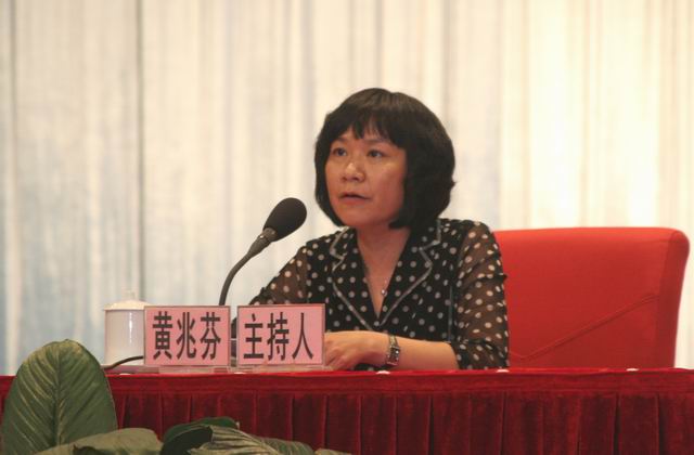 图为清远市委常委、市纪委书记黄兆芬主持报告会
