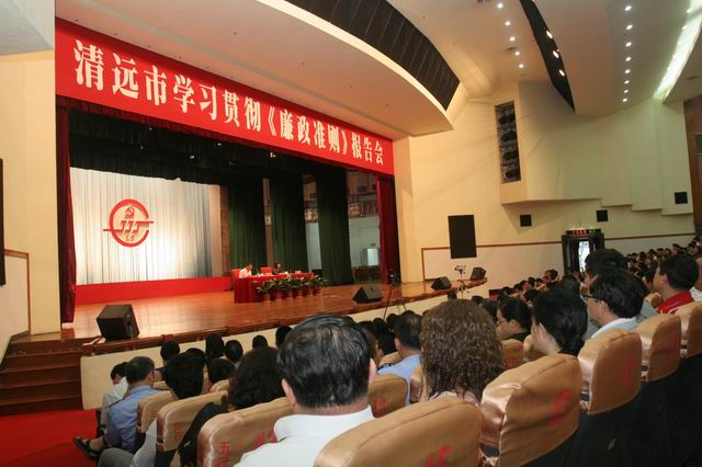 6月11日下午,清远市纪委在市国际会展中心举办第十一期清远纪检监察论坛。省监察厅副厅长曾庆荣作学习《中国共产党党员领导干部廉洁从政若干准则》(以下简称《廉政准则》)专题辅导报告,清远市委常委、市纪委书记黄兆芬主持会议。全市800多人聆听了报告。