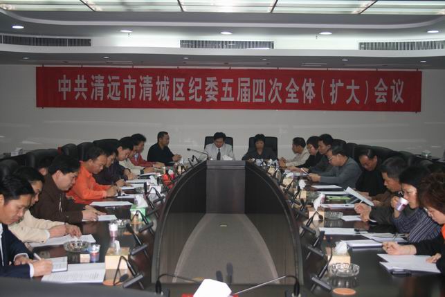 2月11日,清城区在区行政文化中心大楼12楼会议室召开了五届纪委四次全体(扩大)会议。会议全面贯彻落实科学发展观、党的十七大精神、上级纪委和区委的工作部署,回顾总结2008年党风廉政建设和反腐败工作,部署2009年全区反腐败工作。清城区纪委副书记吴汉清主持会议,五届区纪委委员、各街镇纪(工)委正副书记、区直机关纪工委正副书记、区教育局、区公安分局纪委正副书记、区特邀监察员和区纪检监察机关全体干部参加了会议。