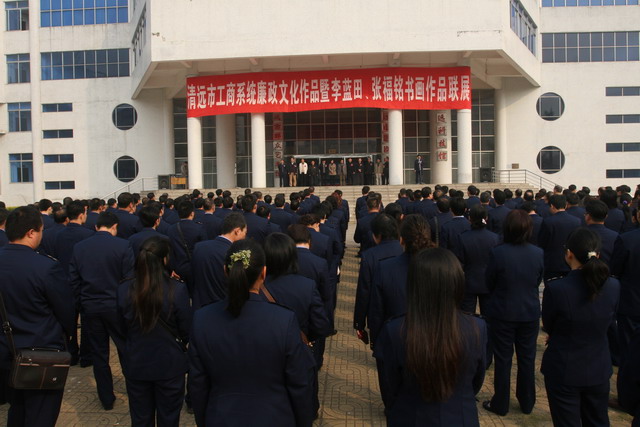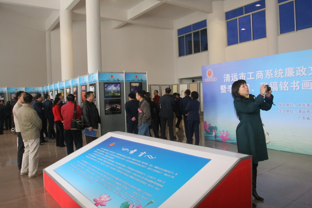 1月19日上午,清远市工商系统廉政文化作品暨李蓝田、张福铭书画作品联展开幕仪式在市国际会展中心举行,市委常委、纪委书记黄兆芬,副市长石芳飞及工商、纪委等系统人员参加了活动。
