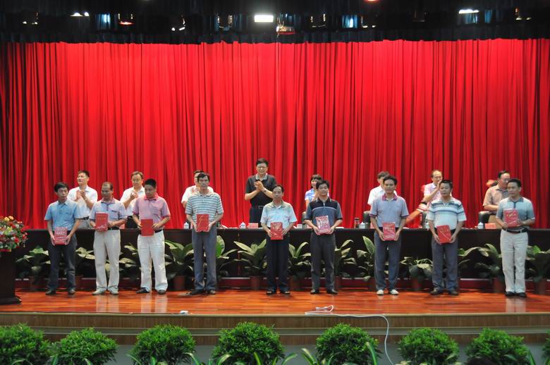 图为省纪委副书记赵振华,清远市委常委、市纪委书记黄兆芬等领导为各县(市、区)颁发获奖奖金