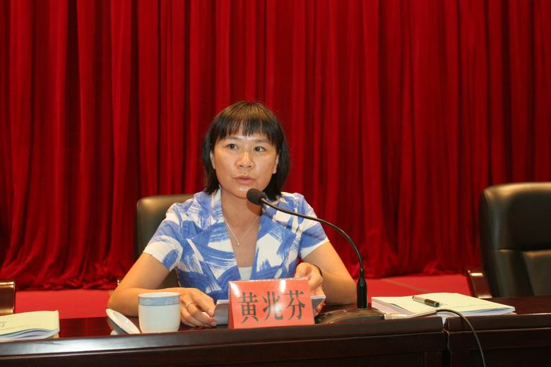 图为清远市委常委、市纪委书记黄兆芬在会上讲话