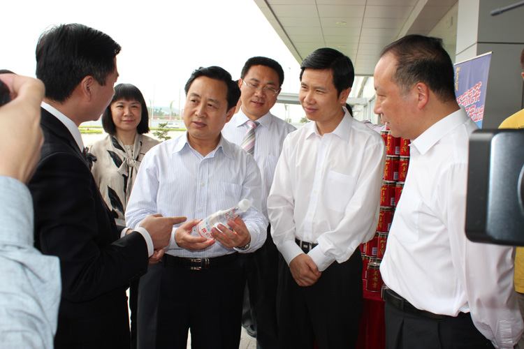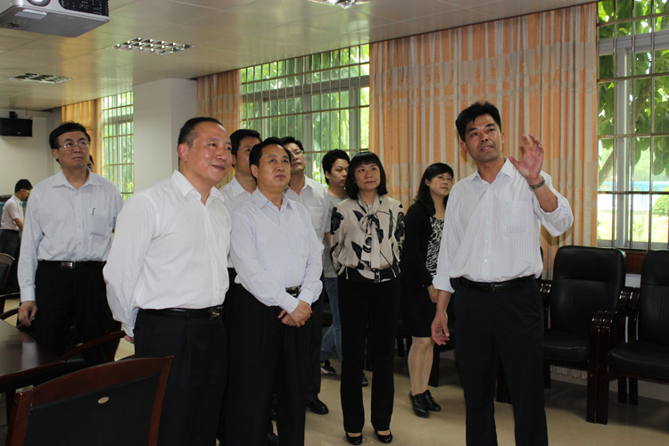 图为省委常委、省纪委书记黄先耀等一行在清远市和佛冈县等领导陪同下参观清远市加多宝草本植物科技有限公司