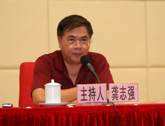 图为清远市纪委常委、监察局副局长龚志强主持会议