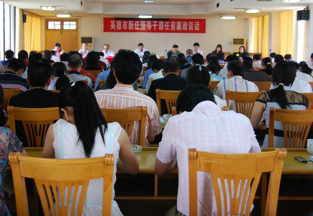为扎实推进惩治和预防腐败体系建设,在坚决惩治腐败的同时,做到“三个更加注重”,根据领导干部任前廉政谈话制度的规定,6月5日下午,英德市纪委在市政府六楼会议室对近段时间以来新提拔任用的82名领导干部以及44名任实职领导干部的配偶进行任前集体廉政谈话。