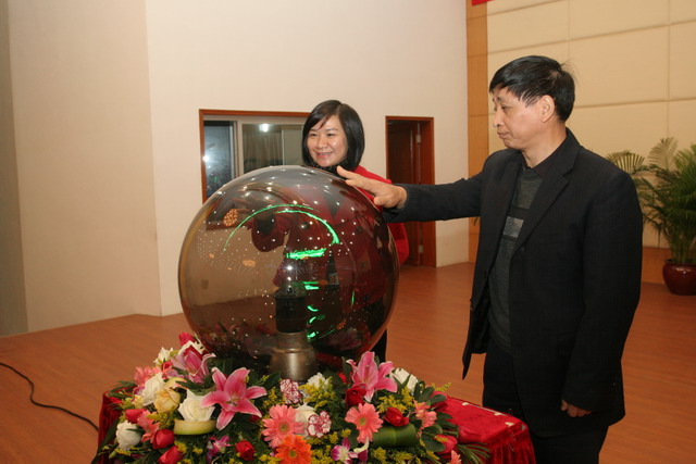 图为黄兆芬(左)和肖燕池(右)启用清远农村党风廉政信息公开平台和重点项目电子监察系统