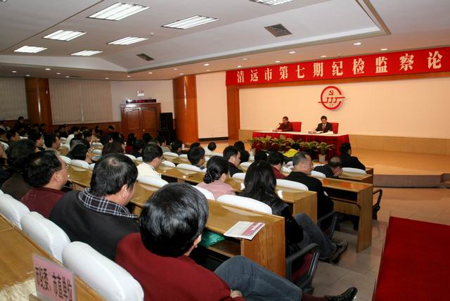 第七期清远纪检监察论坛于3月12日在市会展中心报告厅举行。本期论坛邀请省委宣传部宣传处处长李和平主讲,主题是《以科学发展观为指导,推进反腐倡廉建设》。市直副处以上单位纪检组长(纪委书记)或分管纪检监察工作的领导,市纪委派出(驻)机构干部,市委党校学员及市纪委,清城区、清新县纪委全体干部职工等240多人到场听讲。市委常委、市纪委书记黄兆芬及市纪委常委会其他成员出席论坛并听取讲座。