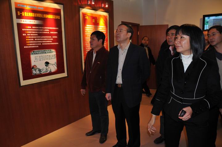 图为中纪委宣教室副主任范耀庚、省纪委宣教室主任凌曲刚等领导