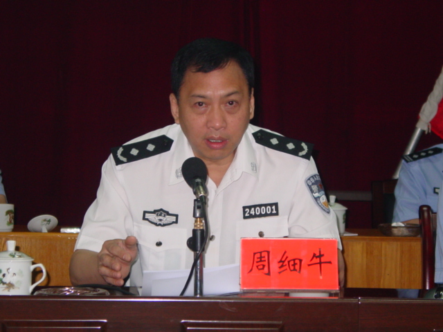 图为清远市委常委、政法委书记、公安局党委书记、局长周细牛同志作重要讲话