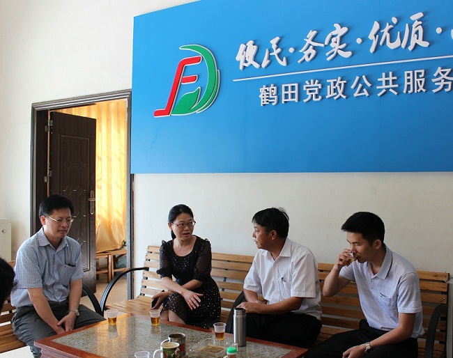 图为市纪委常委胡灿阳同志在龙山镇鹤田村与村干部座谈