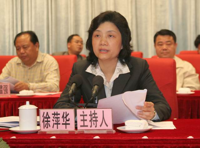 图为清远市委副书记、市长徐萍华主持会议