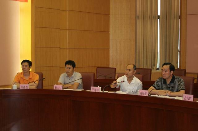 图为省委第九巡视督导组组长古阳胜、副组长肖扬武、张小兰等领导听取汇报
