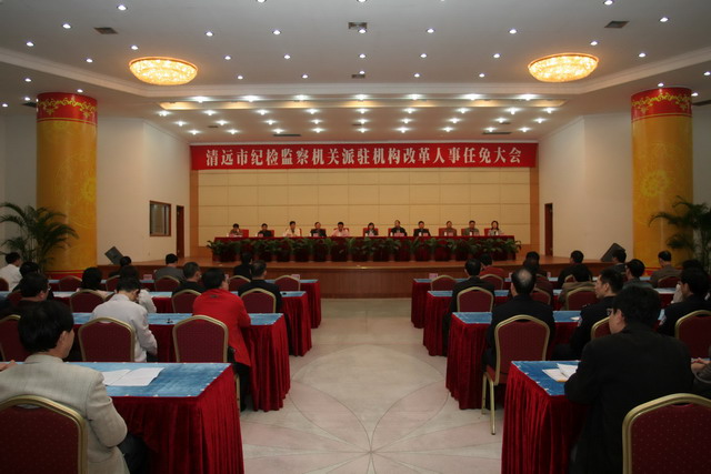图为清远市纪检监察机关派驻机构改革人事任免大会会场