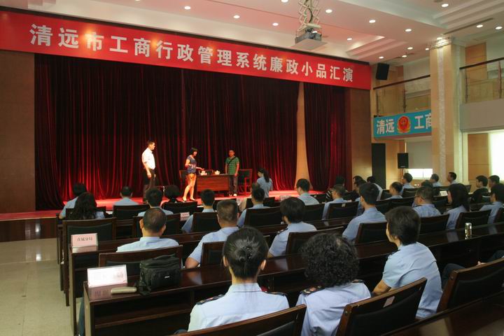 10月15日上午,清远市工商局在办公大楼十六楼多功能会议室举办清远市工商系统廉政小品汇演,来自全市8个县(市)局、直属分局的代表队参加了汇演。清远市纪委常委张作省、广东省工商局监察室副主任顾勇和清远市工商局班子领导及100多名工商干部观看了汇演。