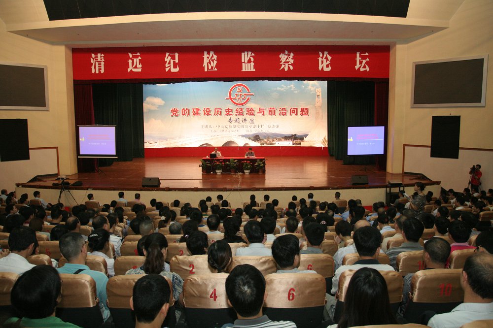 7月9日,由中共清远市纪委、市监察局主办,广东电网公司清远供电局协办的第十五期清远纪检监察论坛开坛,中央党校党建部政党制度室副主任蔡志强教授,应邀出席作题为“党的建设历史经验和前沿问题”的专场辅导报告。市委常委、纪委书记黄兆芬,市纪委机关和派驻(出)机构的全体干部,清城区、清新县纪委部分纪检监察干部,市直单位的科级以上干部以及部分公职人员共800多人参加。