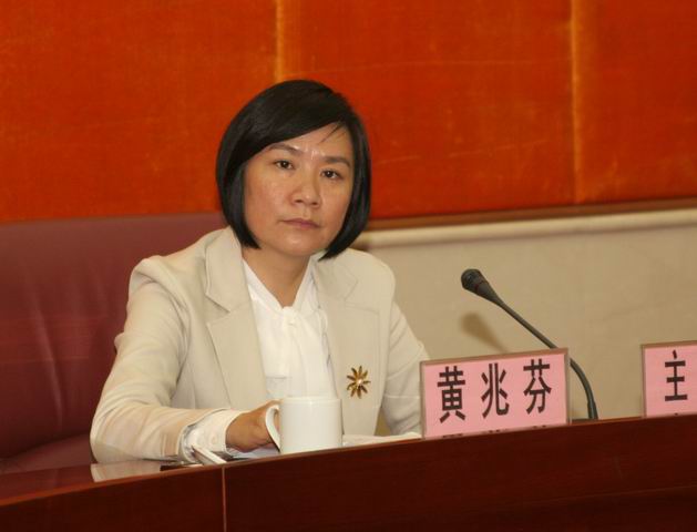 图为清远市委常委、市纪委书记黄兆芬在与市直单位领导调研座谈会上