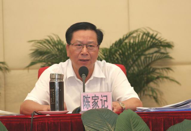 图为清远市委书记、市人大主任陈家记在会上讲话