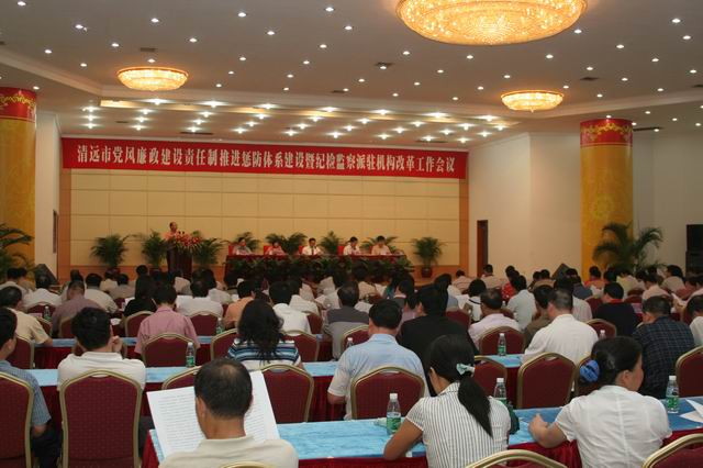 8月31日下午,清远市召开了全市落实党风廉政建设责任制推进惩防体系建设暨纪检监察机关派驻机构改革工作会议,部署构建清远市惩治和防腐体系工作。会议强调全市当前和今后一个时期反腐倡廉工作的重中之重,是认真贯彻落实中央《建立健全惩治和预防腐败体系2008—2012年工作规划》、省委《实施办法》和市委《分工方案》,到2012年建成具有清远特色的惩治和预防腐败体系基本框架。会议还对全面推进市、县两级纪检监察派驻(出)机构改革工作进行部署。
