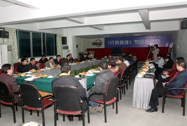 1月27日下午,清远市《行风热线》栏目组在市广播电视中心大楼3楼会议室召开由纪检监察机关、宣传、广电和上线部门等领导以及节目组人员参加的座谈会,对2009年“行风热线”节目工作进行总结,探讨、研究今年节目发展的思路和方向。清远市委常委、宣传部长雷广财,市委常委、市纪委书记黄兆芬出席座谈会并讲话。