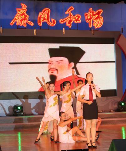 图为佛冈县第一中学学生表演的《修廉洁之身,养浩然之气》