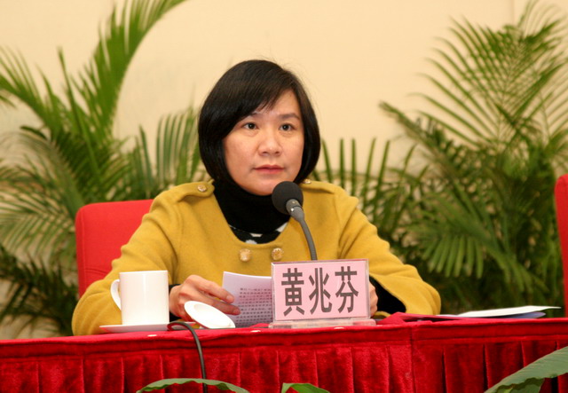 图为清远市委常委、市纪委书记黄兆芬传达全省行政审批改革工作会议精神