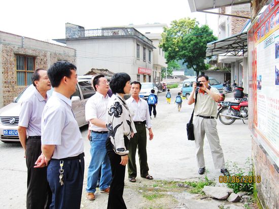 图为黄兆芬等领导一行视察沙田村委会廉政文化进农村工作