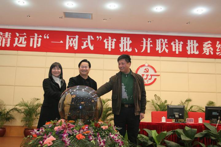 清远市再次给力深化行政审批制度改革!1月4日下午,在省纪委常委、监察厅副厅长秦通海,清远市委常委、常务副市长梁志强,市委常委、市纪委书记黄兆芬共同启动下,清远市“一网式”行政审批和投资项目工程建设并联审批系统正式开通。