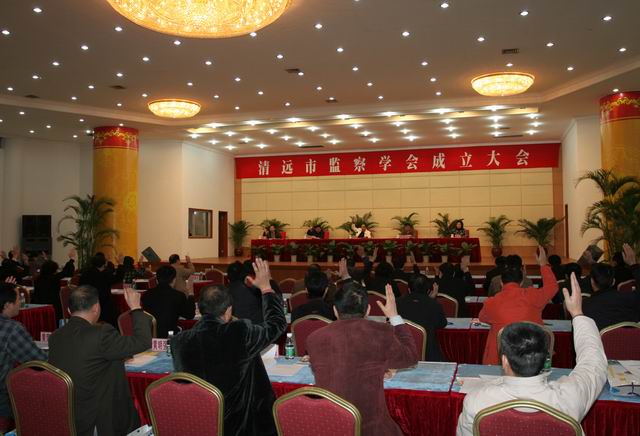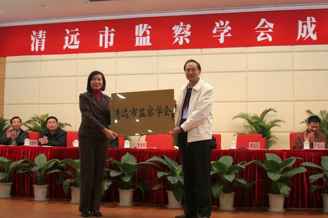 清远市监察学会第一届会员代表大会暨成立大会于2009年1月12日下午在市国际会展中心隆重举行。市委副书记、市长徐萍华专门向大会发来贺信表示祝贺。由市监察局初定的72位清远市监察学会理事会成员代表学会共185名会员参加了会议。省监察学会会长谢谷粱,市委常委、市纪委书记黄兆芬,省纪委《党风》杂志社副总编王景喜,市纪委副书记严名山、冯忠辉等出席了会议。各县(市、区)纪委书记列席了会议。