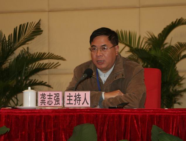 图为清远市纪委常委、监察局副局长、监察学会副会长龚志强主持会议