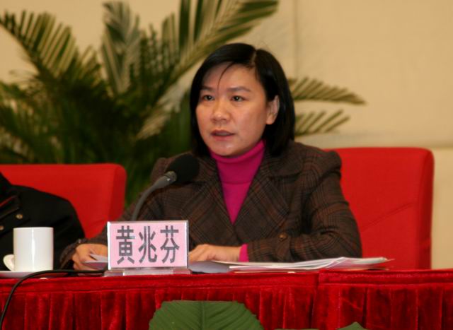 图为清远市委常委、市纪委书记、监察学会名誉会长黄兆芬讲话