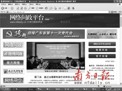 网友可上wen.nfdaily.cn,在南方报网网络问政平台上“拍砖”、“灌水”。