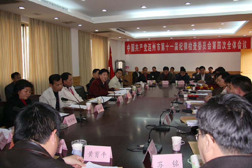 2009年1月19日,中国共产党连州市第十一届纪律检查委员会第四次全体会议在市政府二楼会议室胜利召开。全会审议并通过了连州市纪委副书记黄伟杰同志代表市纪委常委会所作的《突出中心,保障落实,开创党风廉政建设和反腐败工作新局面》工作报告,大会由市纪委副书记黎家才同志主持。