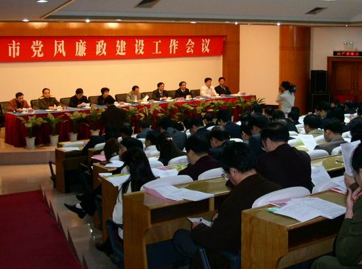2月17日,市委市政府召开了全市党风廉政建设工作会议。市四套班子领导、市纪委委员、各县(市、区)委书记、县长、纪委书记、监察局长和市直副处以上单位主要领导、纪检组长(纪委书记),以及市纪委机关全体干部参加了会议。