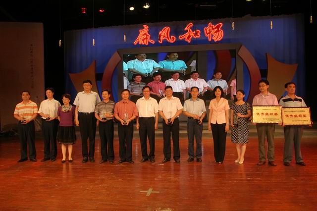 图为省纪委领导和清远市领导为获奖单位颁奖并合影