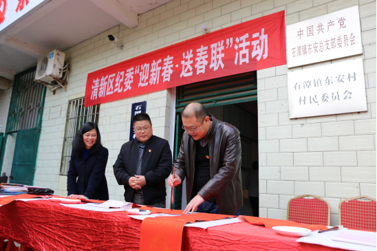 1月21日下午,清新区纪委监委前往石潭镇东安村开展“迎新春·送春联”暨廉政文化宣传活动,向群众送出廉洁春联,给群众送上新春祝福。