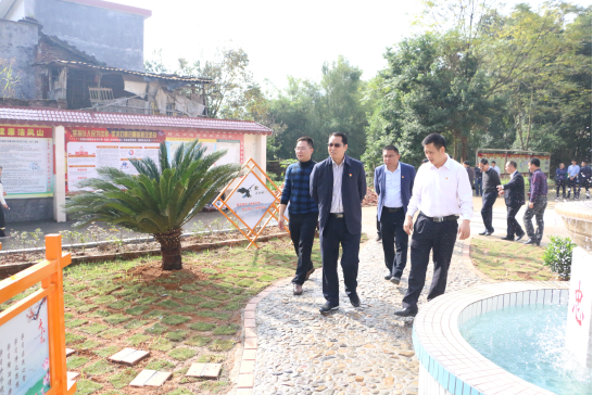 阳山县委常委、县纪委书记、县监委主任刘本跃(左二)一行到凤山村勤廉公园参观