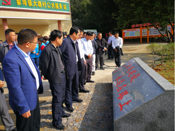 阳山县委常委、县纪委书记、县监委主任刘本跃(前排左三)一行到大塘村勤廉公园参观