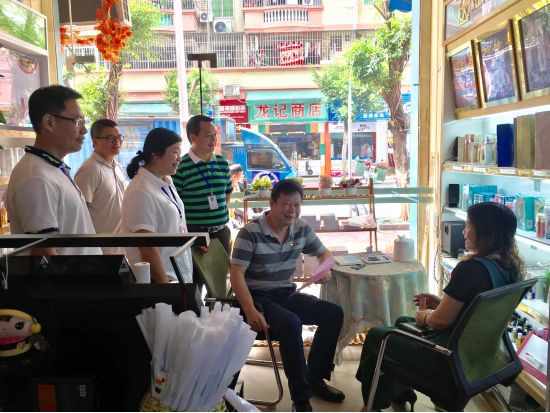 9月4日上午,市纪委副书记、市监委副主任陈锦鹏一行在清新区纪委副书记、区监委副主任唐宝通陪同下,到清新区太和镇信用路周边商铺入户宣传扫黑除恶行动。