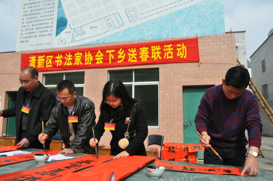 2月12日,清新区纪委、区扶贫办、区文化联合会组织本区近20多名书画家,前往石潭镇白湾村开展书画家协会下乡送春联活动。