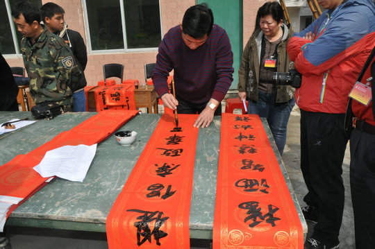 听闻书画家们前来送春联,该村百姓十分热情,纷纷涌进活动现场以求书画家们的墨宝。书画家们奋笔疾书,仅当天上午,就为白湾村民送上了春联300多副,中堂、屏条等廉政书画作品近30幅。